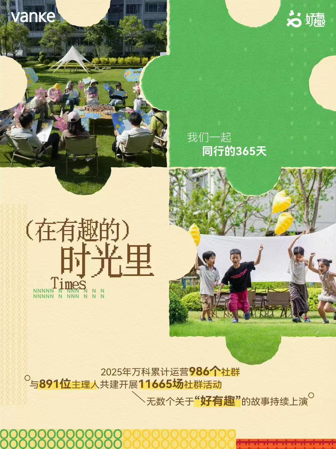 1月5日,万科“好有趣”社群发布2025年度特辑。数据显示,万科全年在全国54个城市累计运营986个社群,与891位主理人共建开展11665场活动,与527498位业主热情同行。