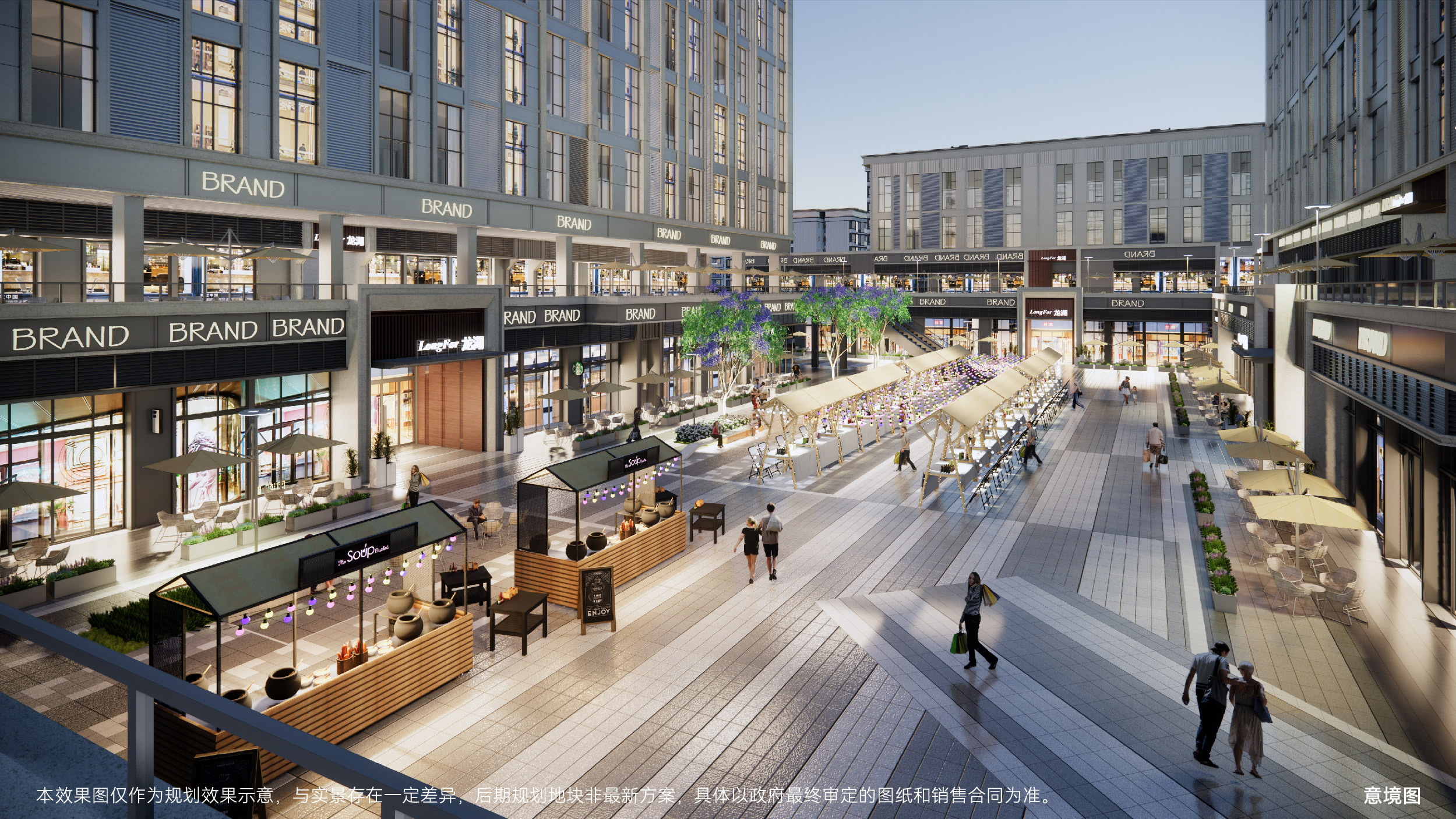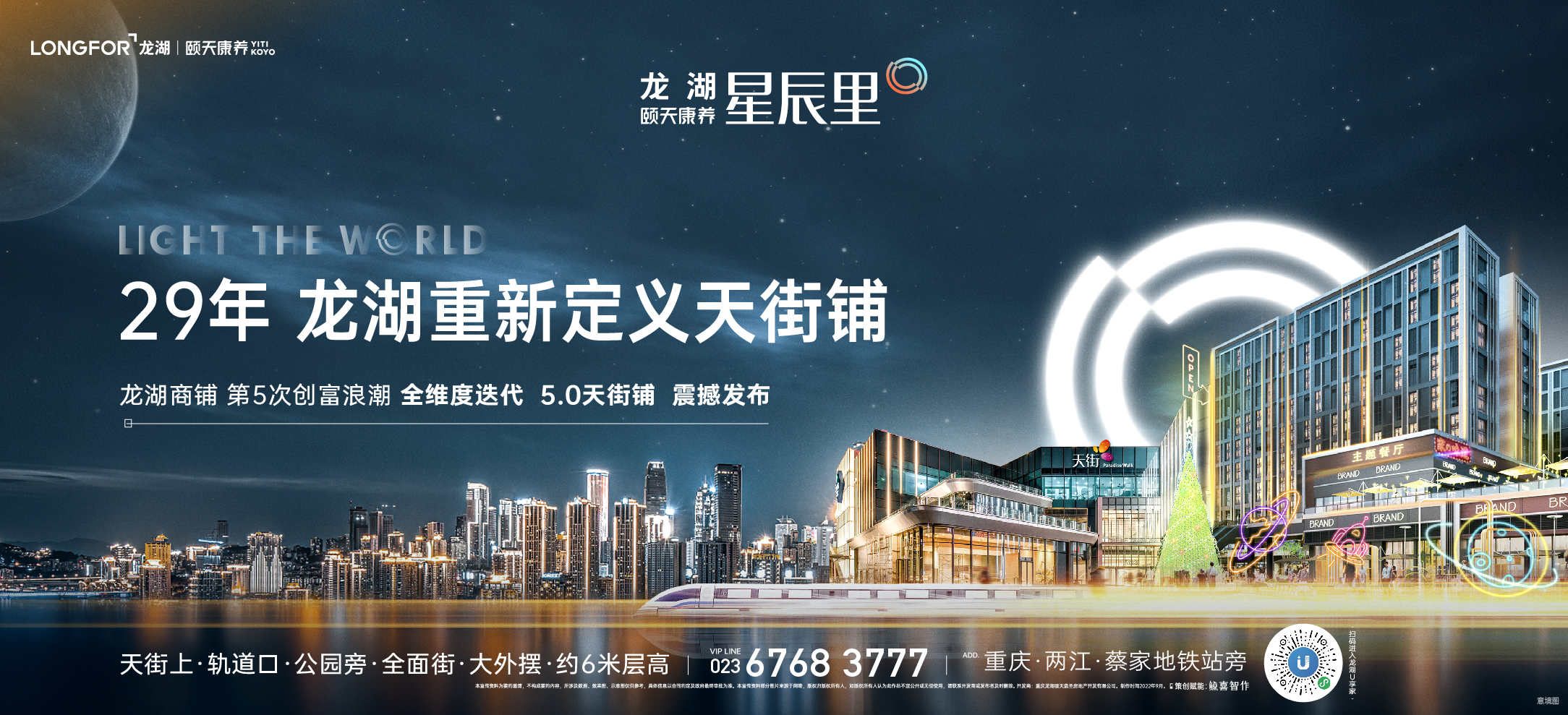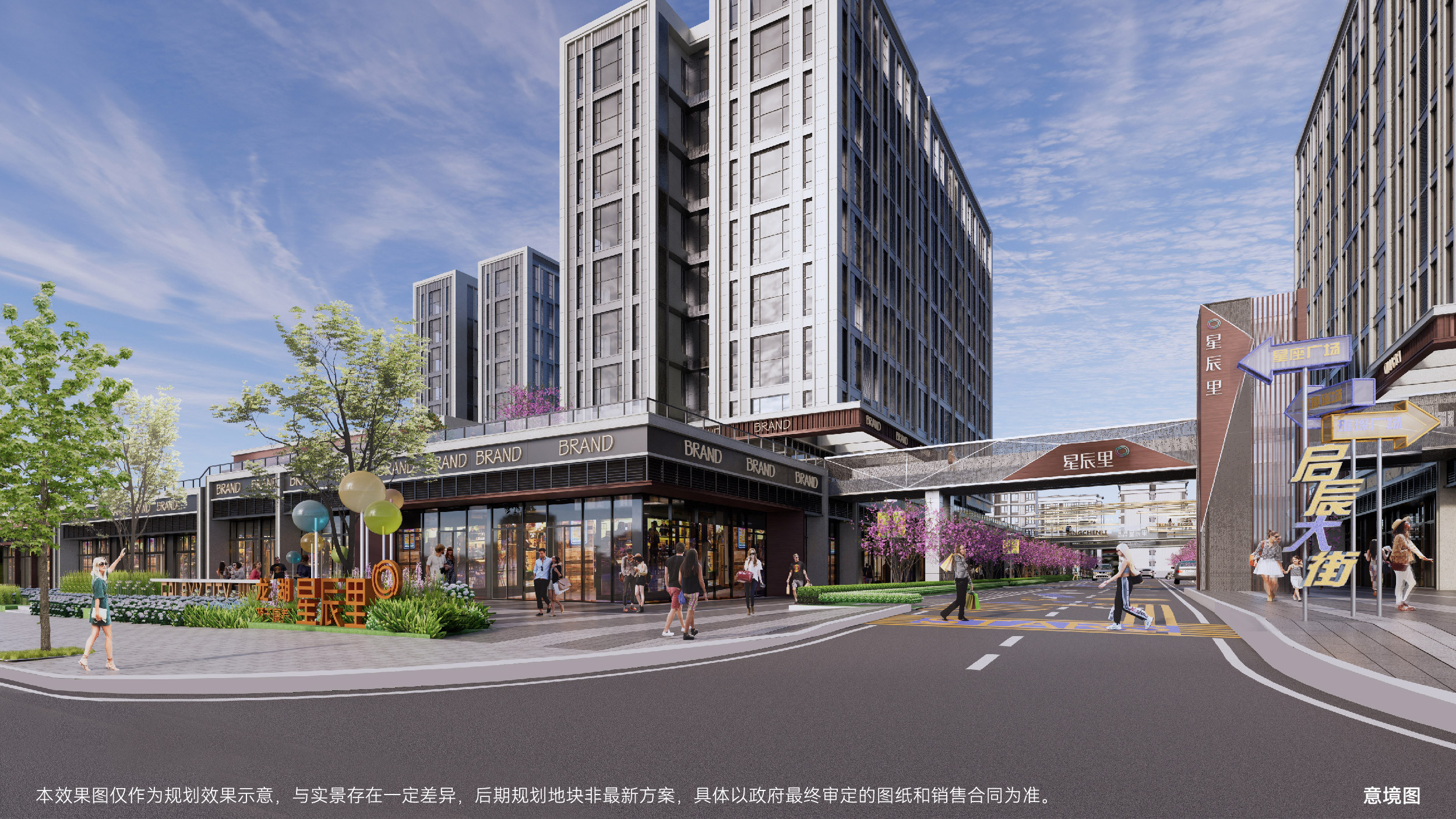 星辰里作为蔡家首个24H不夜城,不止拥有龙湖多年的商业运营经验,更创新天街一体化共赢模式,与天街一体化串联,通过潮玩街区的定位与天街24H商业互补,同时进行产品的革命性升级,一中心两广场的黄金街区打造,环形人流动线,铺铺临街,户户外摆、约6米层高。
