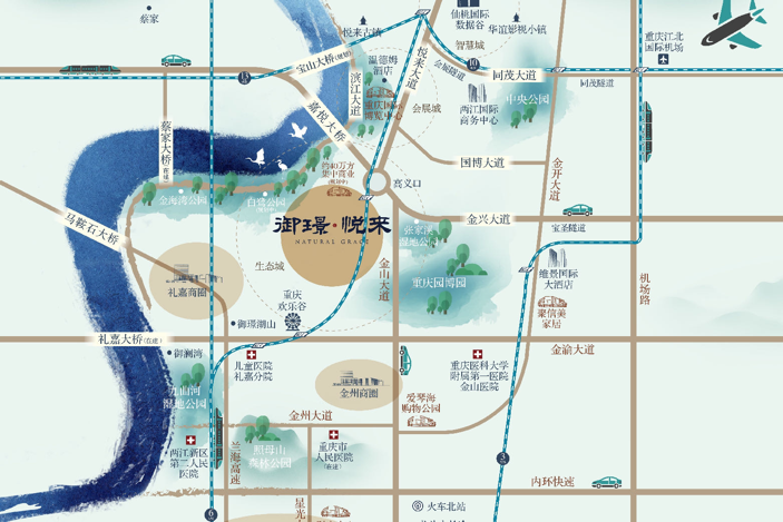 作为城市白鹭的栖居地,这里不仅有360°自然绿意如诗,还有百万商圈加持的都会繁华——中央公园商圈、礼嘉商圈、国博商圈等潮流商业环伺,约50万㎡TOD商圈(规划中)、约21.4万㎡悦来汇(建设中)近距为邻,让繁华精彩的生活触手可及。