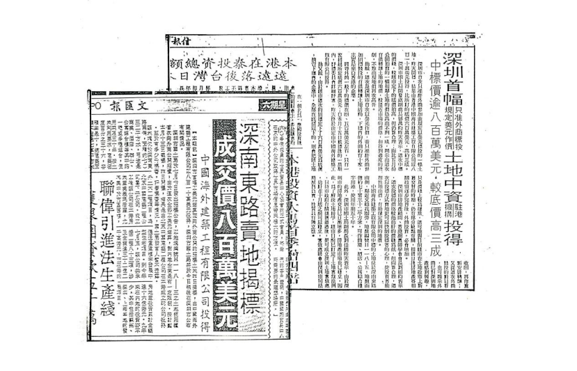 (1988年,深圳也是内地第一块以美元作价的土地由中海竞得,后发展为“海富花园”)